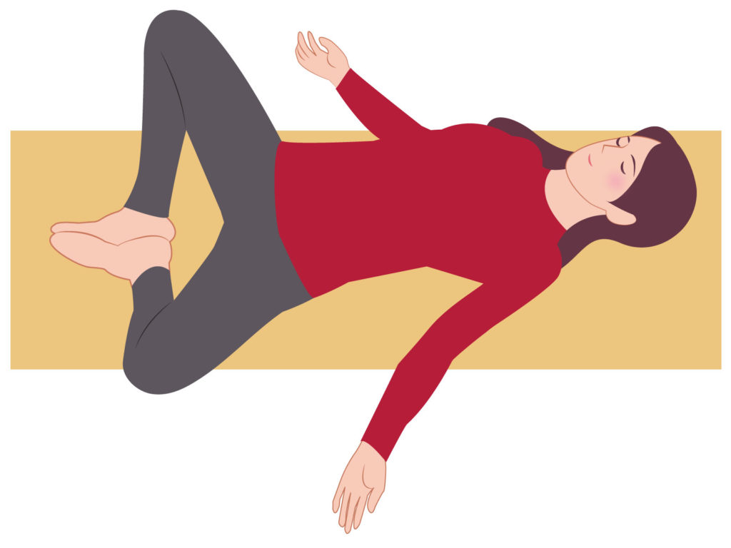 - 仰向けに寝て、両膝を立てる