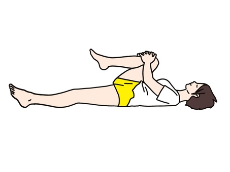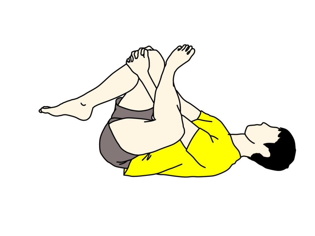 - 仰向けに寝て、片方の膝を両手で抱え込む