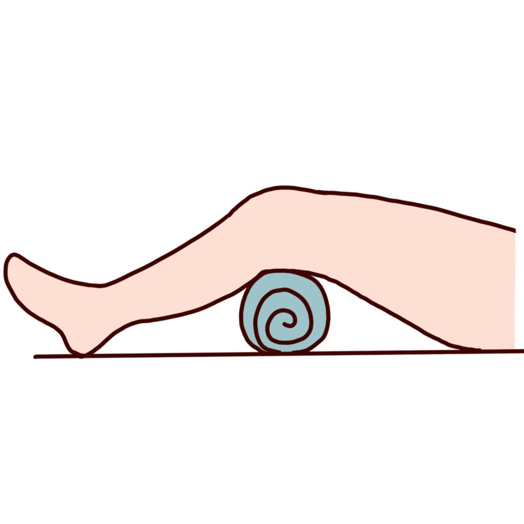 - 仰向けに寝て、膝の下に丸めたタオルを入れる