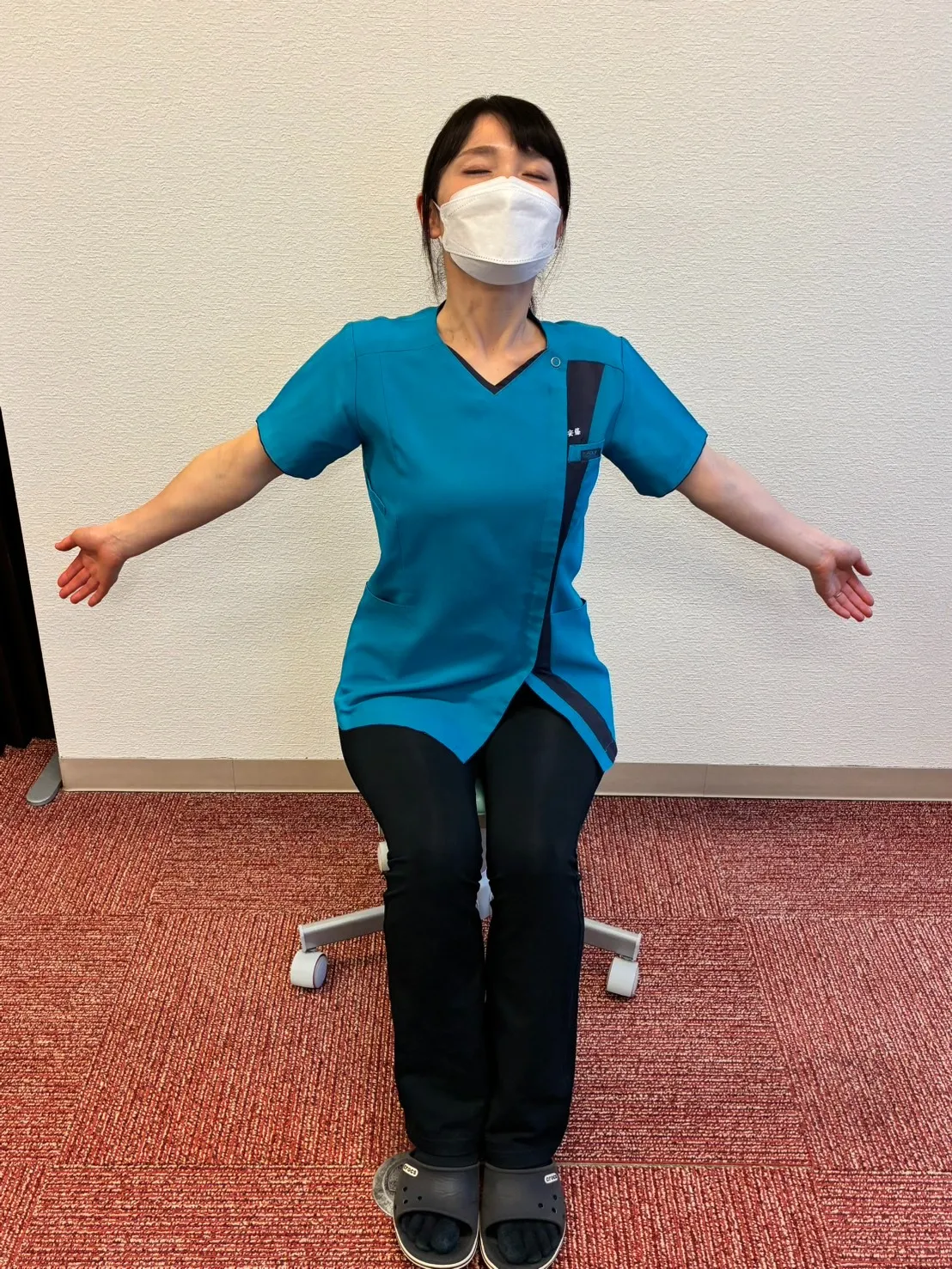 - 息を吸いながら、背中を反らせて目線を天井に向ける