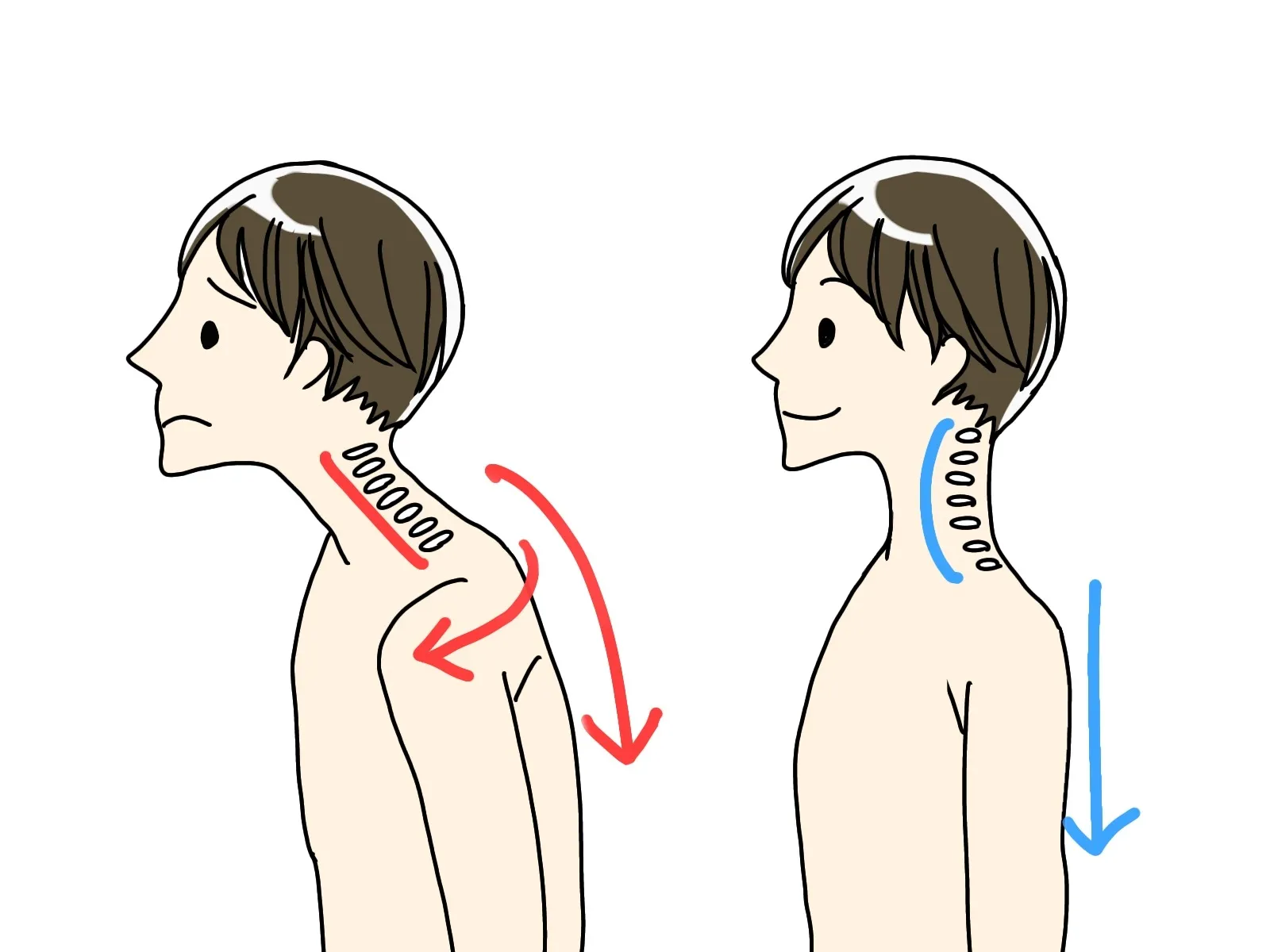 重い荷物を腕を曲げて持ち続けているようなもので、当然筋肉は悲鳴を上げ、血流が悪くなり、こり固まってしまいます。